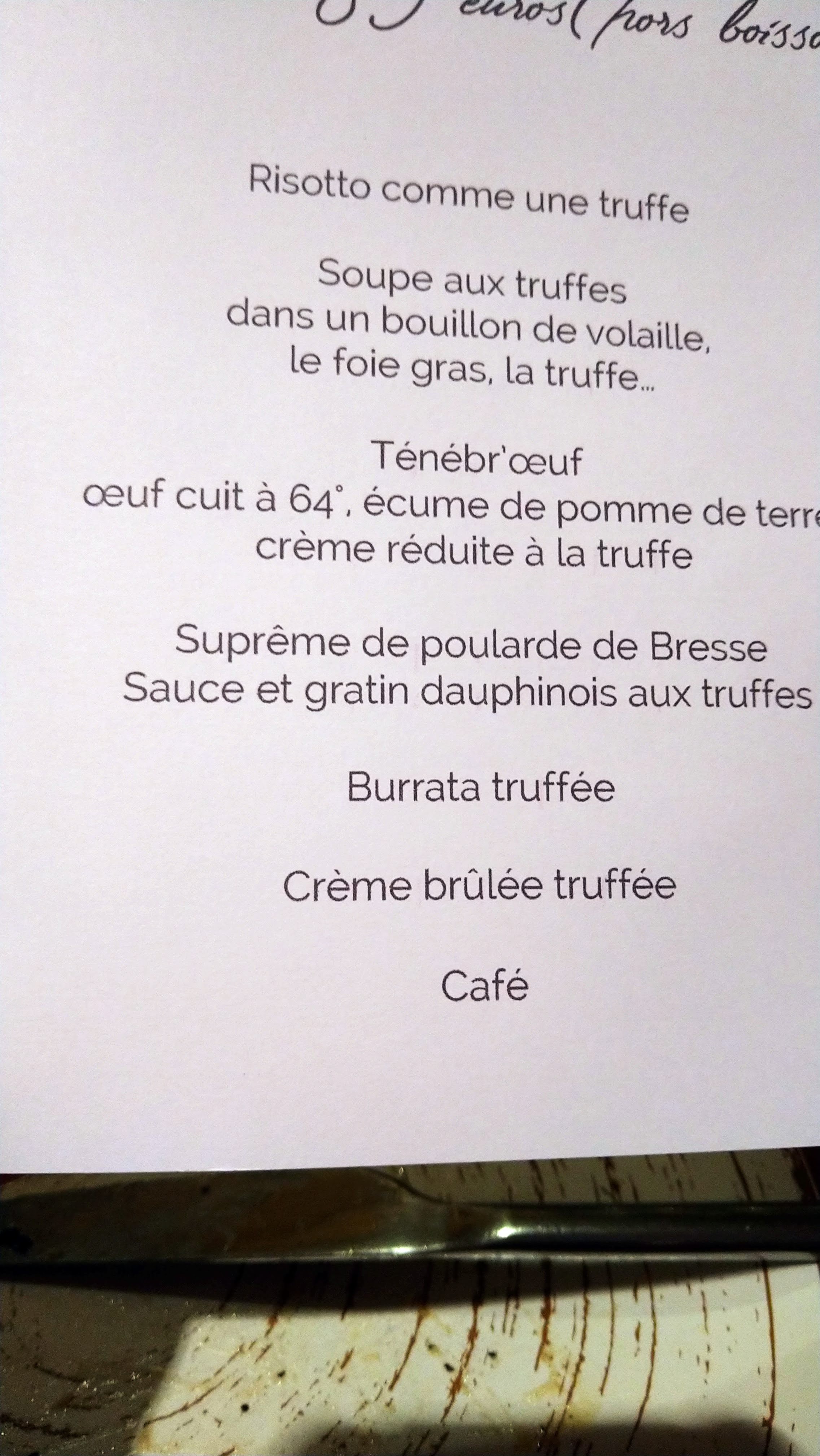 On a mangé au restaurant éphémère en janvier 2022 avec un menu 100% truffe Tout était succulent, on a adoré ! Accueil sympathique également ! Seul bémol, on nous avait compté une bouteille de champagne alors qu'on avait pris du vin (15-20€ de différence sur l'addition). On s'en est rendu compte une fois dans la voiture, et ils ont accepté en s'excusant de nous rembourser la différence, donc correct mais faites attention à vos additions